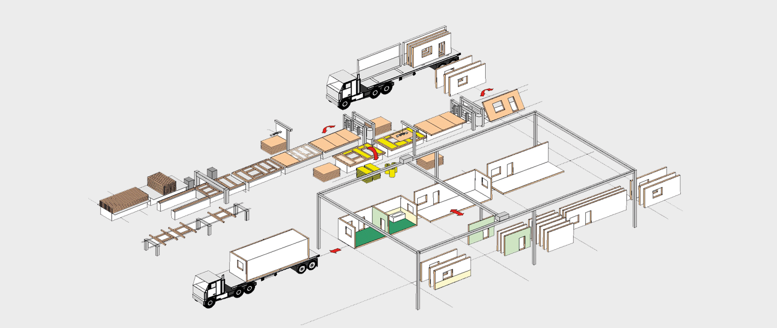 The wupClient production line control unit enables communication between individual machines and a production system. The entire flow of data from CAD up to execution by the relevant machine is displayed. The production line control unit used in combination with the wupClient installed on the machine provides central control of the production flow. The machines receive the right information at the right time, the elements are produced in the desired order and the effort for logistics is reduced.